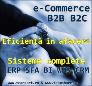 Transart anunta modulul e-Shop care extinde functionalitatea sistemelor B-ORG ERP si Neomanager 7 cu functionalitati complete de tip magazin online (website-uri de comert electronic B2C si B2B), utilizand platforma Teamshare.E-commerce dezvoltata de Entelion Software.